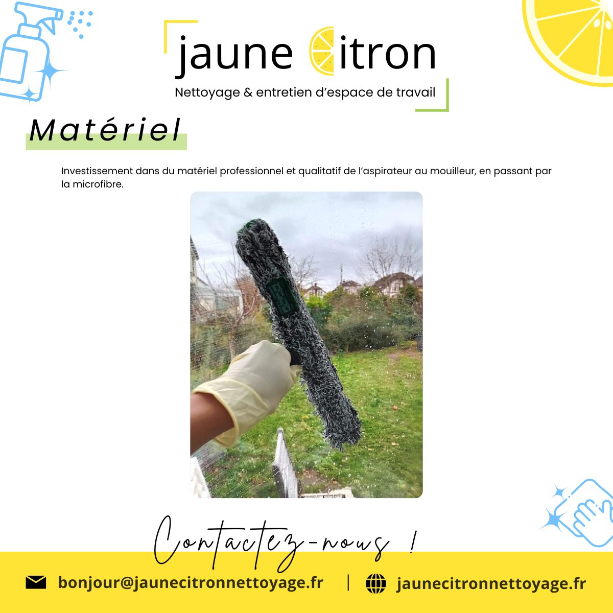 Jaune Citron, câest la propretĂ© sans compromis de qualitĂ©. Notre savoir-faire repose sur une approche disruptive, performante et raisonnĂ©e du nettoyage. Nos protocoles intĂšgrent une biotechnologie française brevetĂ©e conçue pour crĂ©er un impact environnemental positif : efficacitĂ© de trĂšs loin supĂ©rieure aux Ă©quivalents pĂ©trochimiques ou vĂ©gĂ©taux, utilisation parcimonieuse de l’eau, respect absolu de la santĂ© de tous.